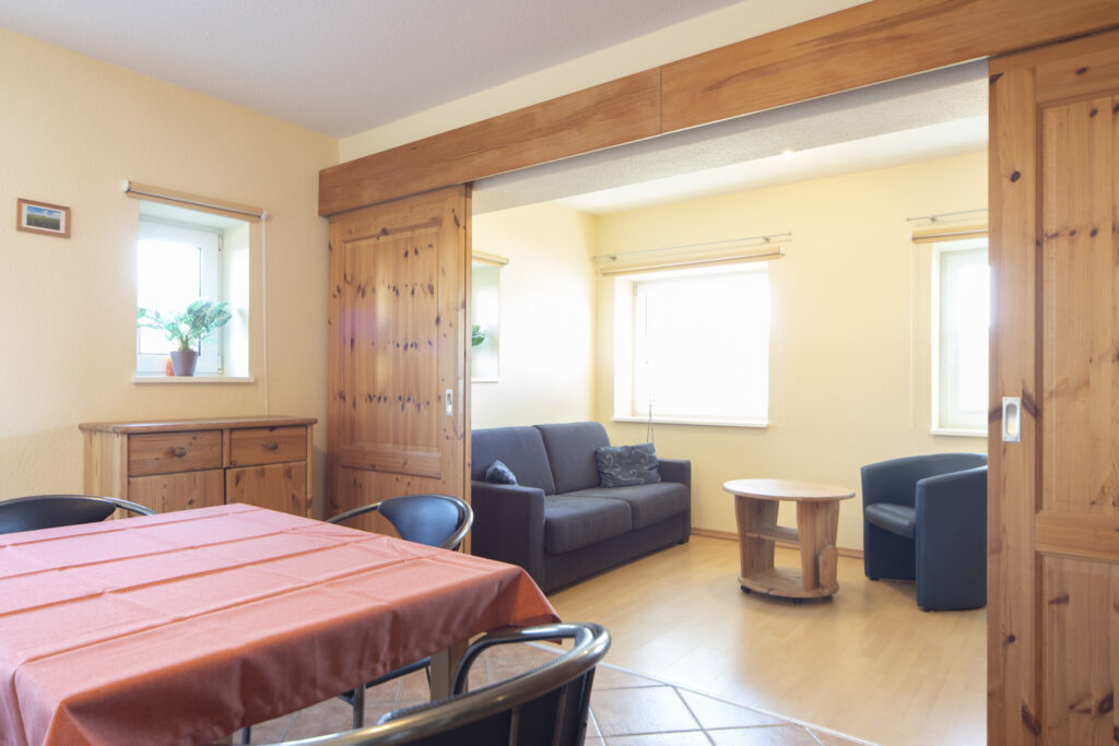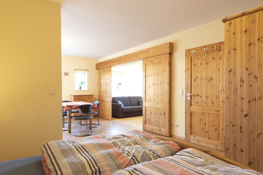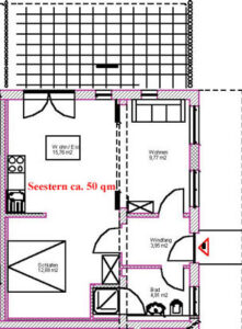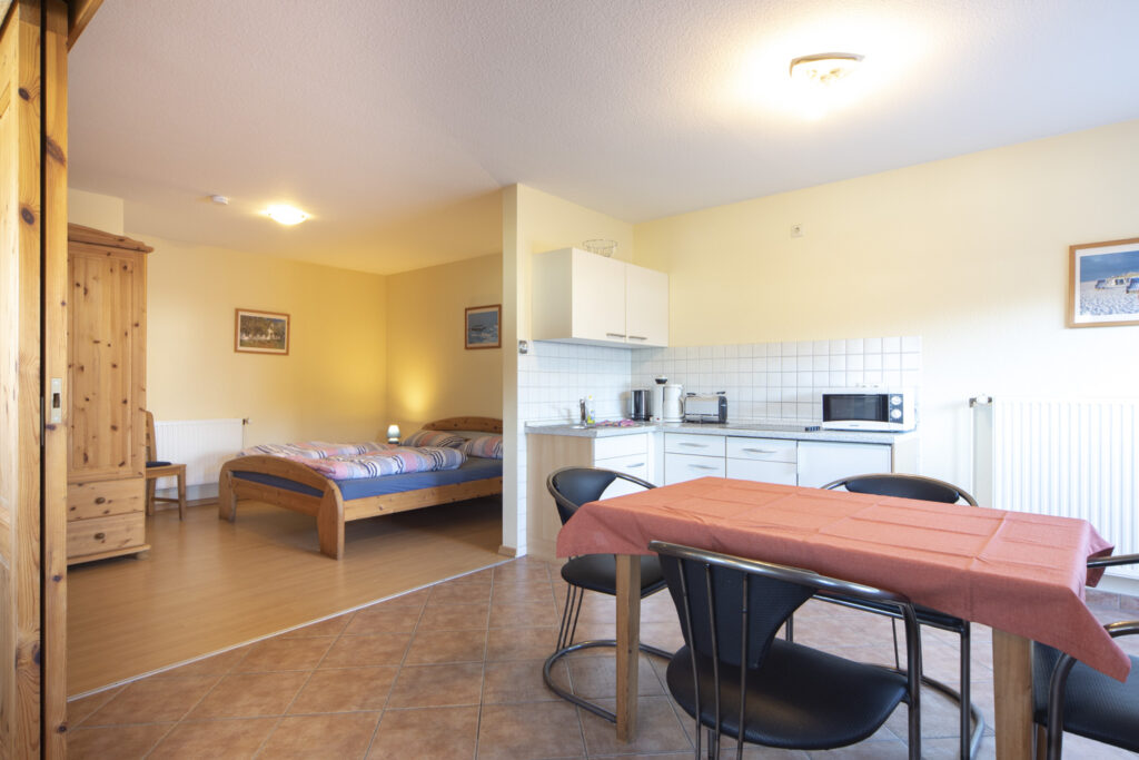 Unser Appartement Seestern eignet sich für 2 Personen und ist mit Kabelfernsehen sowie Stereoanlage ausgestattet. Die Besonderheit bei diesem Appartement ist, daß das Schlafzimmer nicht durch eine durchgehende Wand von der großräumigen Küche abgegrenzt wurde. Das Wohnzimmer wiederum wird von der Küche durch eine Schiebetür getrennt. Die Ferienwohnung hat insgesamt ca. 50 qm und ihr Charme entsteht durch die Offenheit. Das Badezimmer (Dusche/WC) ist von beiden Räumen aus erreichbar, so dass Sie nicht durch das jeweilige andere Zimmer durchgehen müssen, um das Bad zu benutzen. Von der komplett eingerichteten Wohnküche (4 Plattenherd, Geschirrspüler) haben Sie direkten Zugang zu Ihrer eigenen Westterrasse.